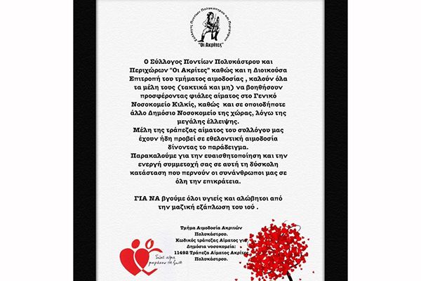 Τμήμα Αιμοδοσίας Ακριτών Πολυκάστρου.