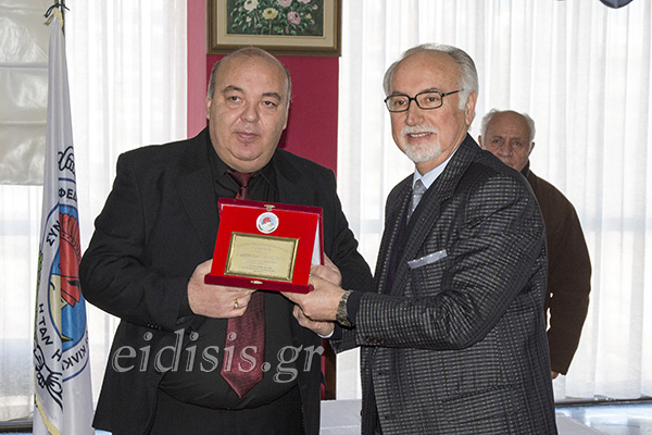 Την τιμητική διάκριση στο δήμαρχο Παιονίας Χρήστο Γκουντενούδη απένειμε ο γεν. γραμματέας του Συνδέσμου Γιώργος Ηλιάδης.