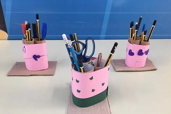 Αρχικά, οι μικροί μας φίλοι σχεδίασαν και έκοψαν διάφορα κομμάτια και στη συνέχεια τα κόλλησαν. Αφού ολοκληρώσαμε την κατασκευή μας, βγάλαμε πολλές φωτογραφίες. Μια ακόμη κατασκευή, χρήσιμη για τώρα που ξεκίνησαν τα σχολεία, ήταν μία τριπλή μολυβοθήκη, από ανακυκλώσιμα υλικά. Το κάθε παιδί τη διακόσμησε όπως επιθυμούσε και ανυπομονούσανε να γυρίσουν σπίτι να τη γεμίσουν!