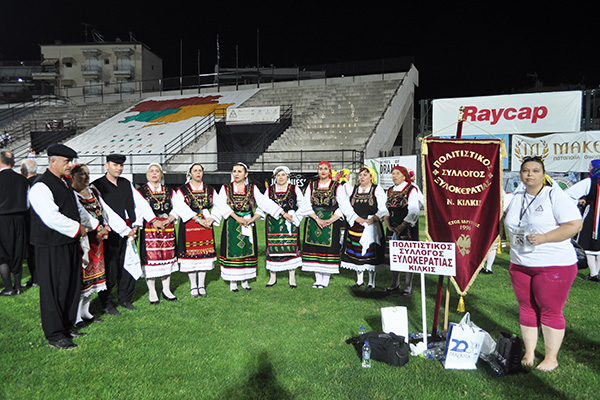 Μετά το σούρουπο άρχισαν οι σύλλογοι να εισέρχονται στο γήπεδο σε πομπή, παίρνοντας θέση ανάλογα με το νούμερο(αριθμό) που ο καθένας είχε για το χορό. Προηγήθηκαν δρώμενα με κρουστά και με τη συμμετοχή μιας κοπέλας χορεύτριας από κάθε σύλλογο(από εμάς η Αθανασιάδου Κων/να).