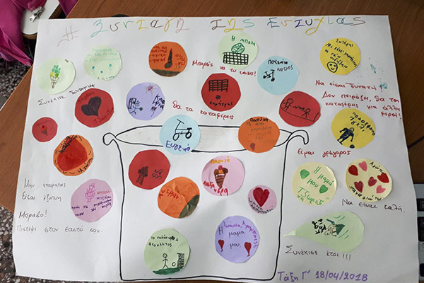 Μέσα από την αφήγηση, δόθηκε το ερέθισμα για να συζητήσουμε με τους μαθητές θέματα, όπως τι είναι η περιέργεια, πότε κρατάμε μυστικά, τι είναι η ευτυχία, πως μπορούμε να είμαστε ευτυχισμένοι, αν υπάρχουν μαγικά φίλτρα που μας βοηθούν να νιώθουμε καλύτερα, τι μπορούμε να κάνουμε όταν νιώθουμε φοβισμένοι κι αδύναμοι. Χρησιμοποιώντας το κολάζ και τη ζωγραφική τα παιδιά έφτιαξαν τη συνταγή της ευτυχίας της τάξης τους, ενώ μέσα από το παιχνίδι ρόλων δοκίμασαν τρόπους να πουν όχι και να αντισταθούν σε ανεπιθύμητες πιέσεις.