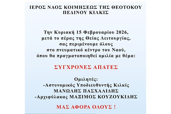 Ομιλία στο πνευματικό κέντρο Ιερού Ναού Πεδινού με θέμα: "Σύγχρονες Απάτες"