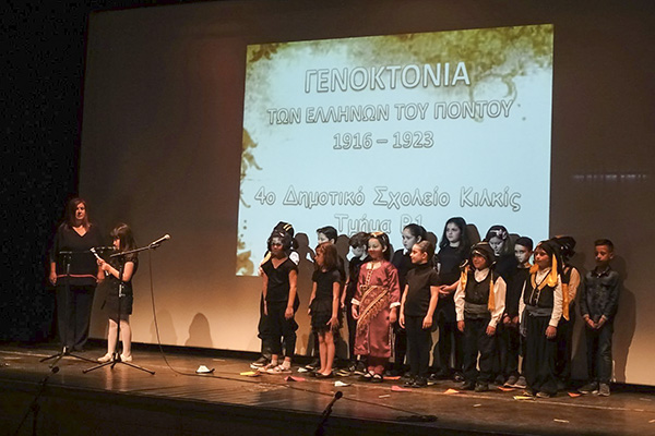 Πρωταγωνιστές στην εκδήλωση οι μαθητές και οι παραπάνω Δασκάλες του 2ου και 4ου Δημοτικού σχολείου Κιλκίς, που κάλυψαν με παραστατικό τρόπο ‘’λευκές’’ σελίδες της ιστορίας στα σχολικά βιβλία και απέσπασαν τα συγχαρητήρια των παρισταμένων για την πρωτοτυπία της αναφοράς στα δραματικά γεγονότα, που έλαβαν χώρα σε βάρος του Ποντιακού Ελληνισμού και για τον τρόπο που αυτά παρουσιάσθηκαν μέσα από το μάτι, το μυαλό και την έ κφραση των μικρών μαθητών των τάξεων του δημοτικού σχολείου, όπου διδάσκουν οι συγκεκριμένες δασκάλες με καταγωγή από τον Άγιο Μάρκο και το Κιλκίς.