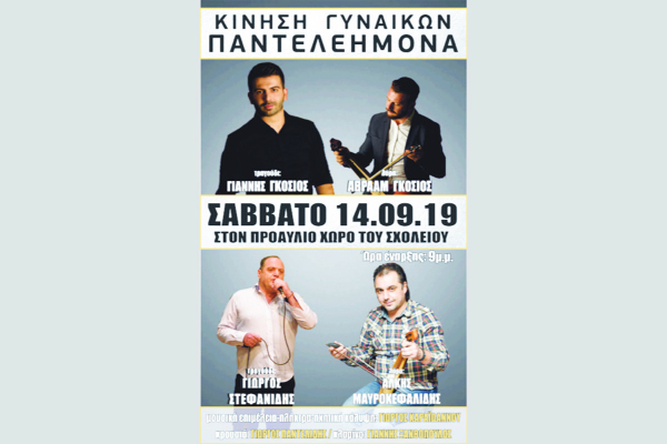 Πανηγύρι το Σάββατο 14 Σεπτεμβρίου στον Άγιο Παντελεήμονα οργανώνει ο Σύλλογος Γυναικών του χωριού, στον αύλειο χώρο του Σχολείου, μετά τις 9 το βράδυ.