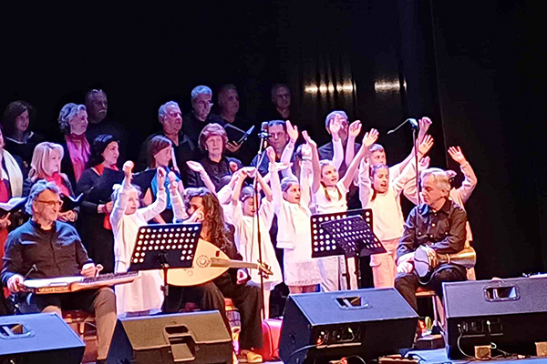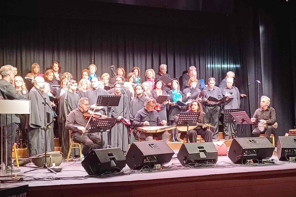 Η παράσταση ολοκληρώθηκε με βυζαντινούς ύμνους και αποσπάσματα του Επιτάφιου Θρήνου από τον Βυζαντινό χορό "Ευδρομούντες".