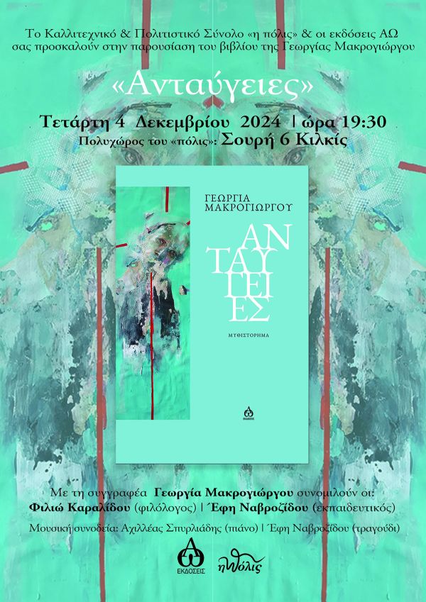 Η παρουσίαση θα γίνει την Τετάρτη 4 Δεκεμβρίου 2024 και ώρα 19:30 στον πολυχώρο του «πόλις», Σουρή 6 Κιλκίς.