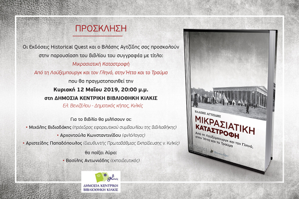 Παρουσίαση βιβλίου του Βλάση Αγτζίδη για τη Μικρασιατική καταστροφή στη Δημόσια Βιβλιοθήκη Κιλκίς, την Κυριακή 12 Μαΐου, στις 8μ.μ.