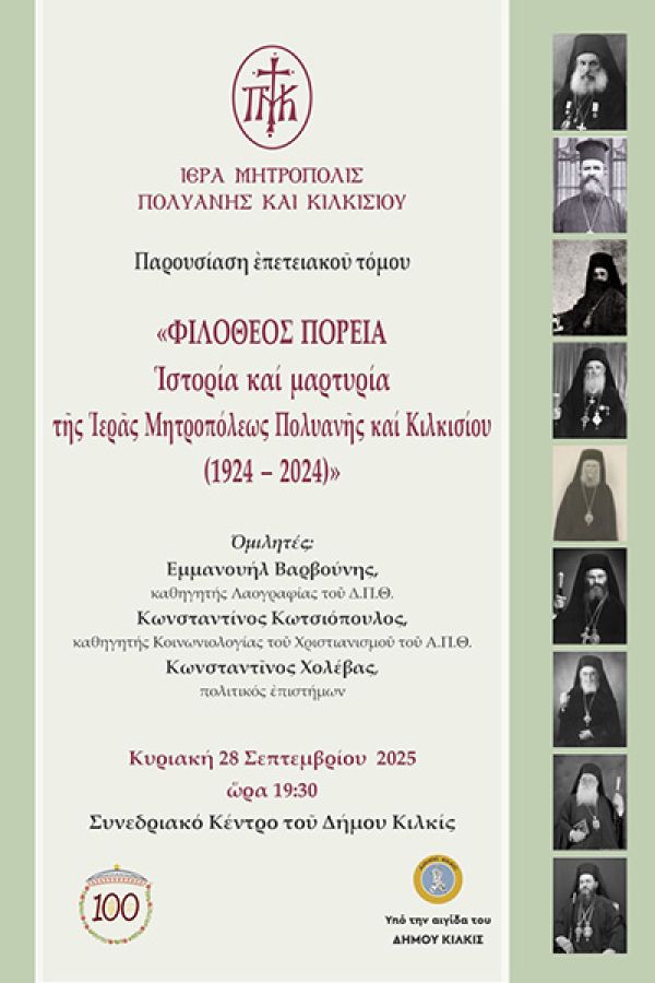 που θα πραγματοποιηθεί την Κυριακή 28 Σεπτεμβρίου 2025 και ώρα 19:30 στο Συνεδριακό Κέντρο του Δήμου Κιλκίς.