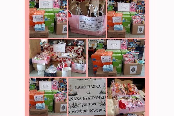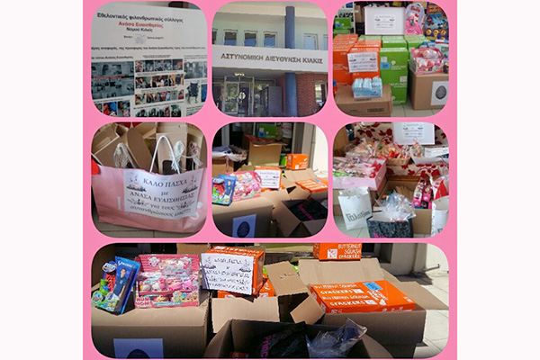 Ο Σύλλογος «Ανάσα Ευαισθησίας Κιλκίς» προσέφερε πακέτα τροφίμων σε 55 οικογένειες, καθώς και δώρα, παιχνίδια, ρούχα, παπούτσια καινούργια, 200 χειροποίητες λαμπάδες, βαμμένα αυγά και τσουρέκια σε όσο το δυνατόν περισσότερα παιδιά.