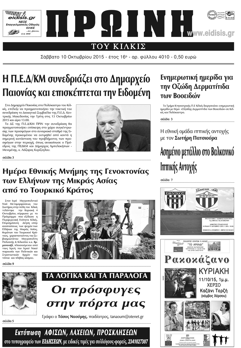 Πέντε χρόνια πριν. Διαβάστε τι έγραφε η καθημερινή εφημερίδα ΠΡΩΙΝΗ του Κιλκίς (10-10-2015)