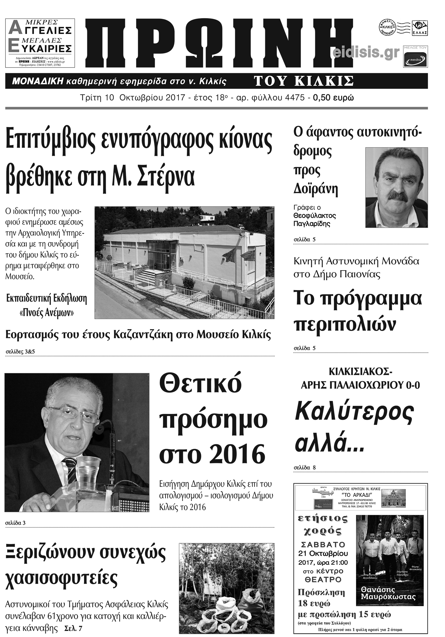 Πέντε χρόνια πριν. Διαβάστε τι έγραφε η καθημερινή εφημερίδα ΠΡΩΙΝΗ του Κιλκίς (10-10-2017)
