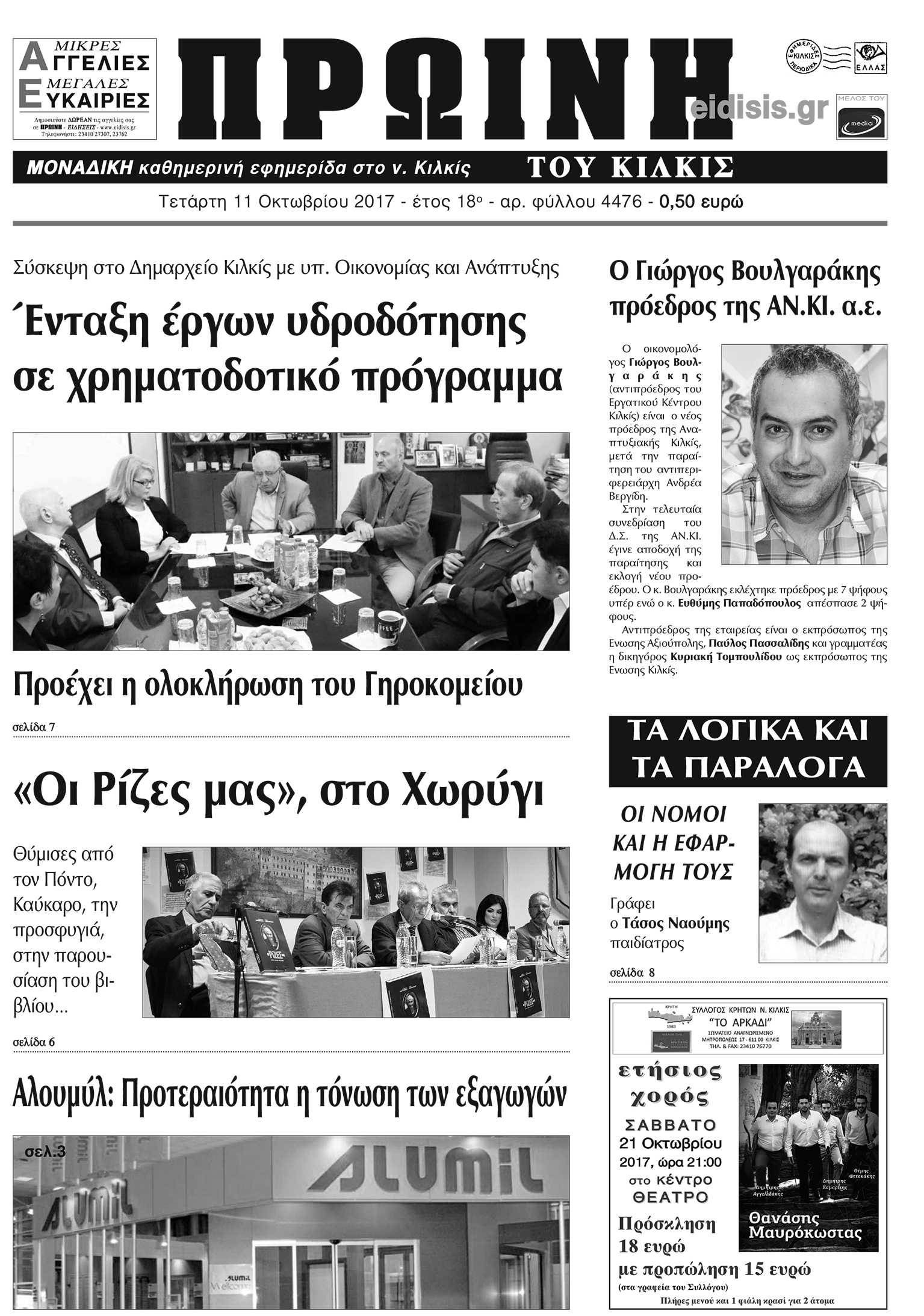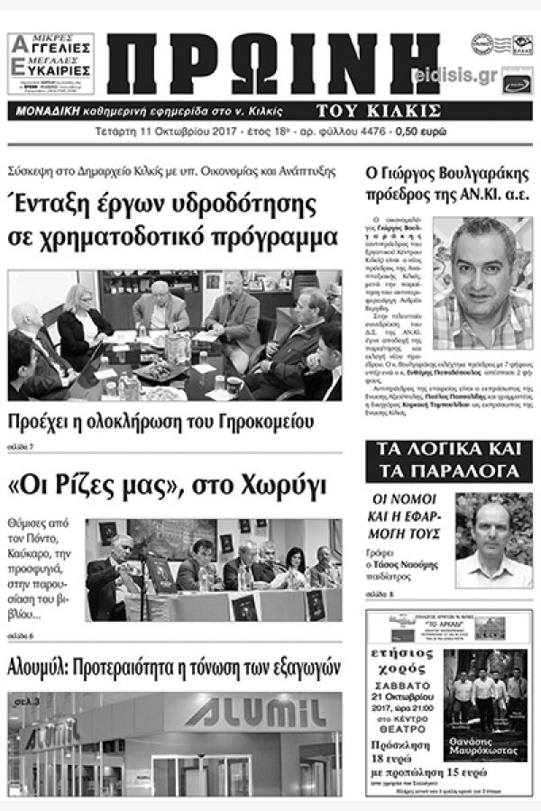 Πέντε χρόνια πριν. Διαβάστε τι έγραφε η καθημερινή εφημερίδα ΠΡΩΙΝΗ του Κιλκίς (11-10-2017)
