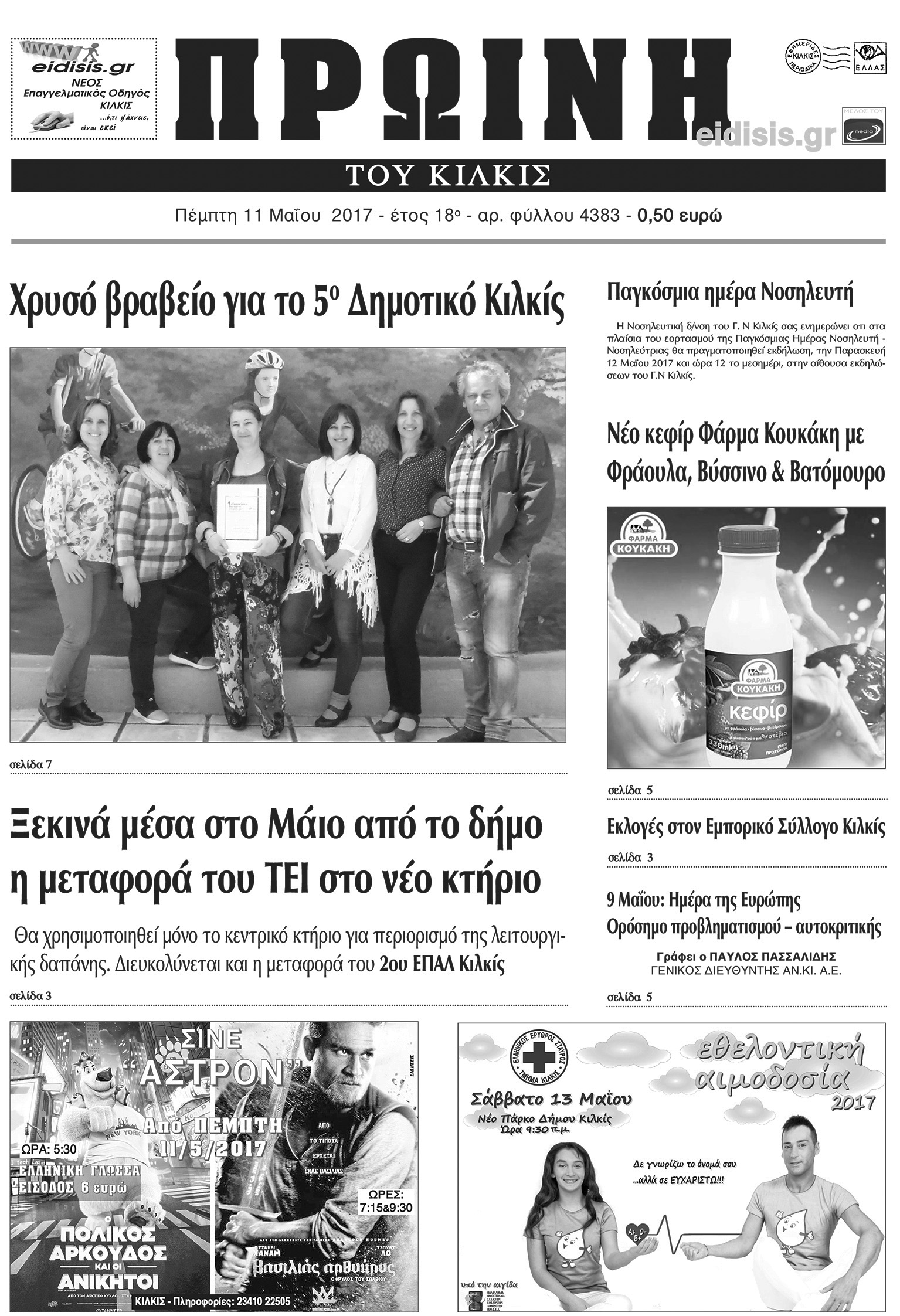 Πέντε χρόνια πριν. Διαβάστε τι έγραφε η καθημερινή εφημερίδα ΠΡΩΙΝΗ του Κιλκίς (11-5-2017)