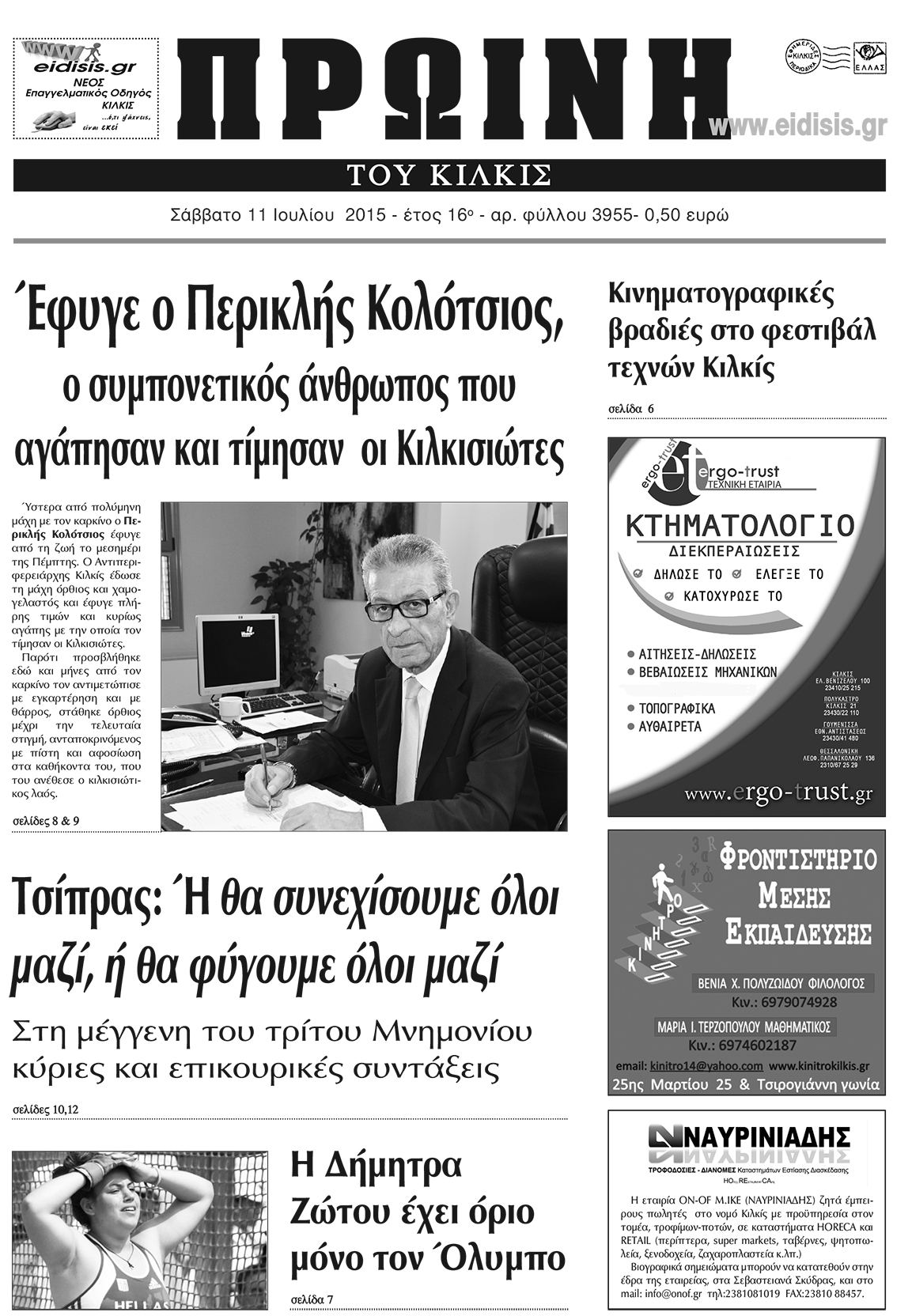 Πέντε χρόνια πριν. Διαβάστε τι έγραφε η καθημερινή εφημερίδα ΠΡΩΙΝΗ του Κιλκίς (11-7-2015)