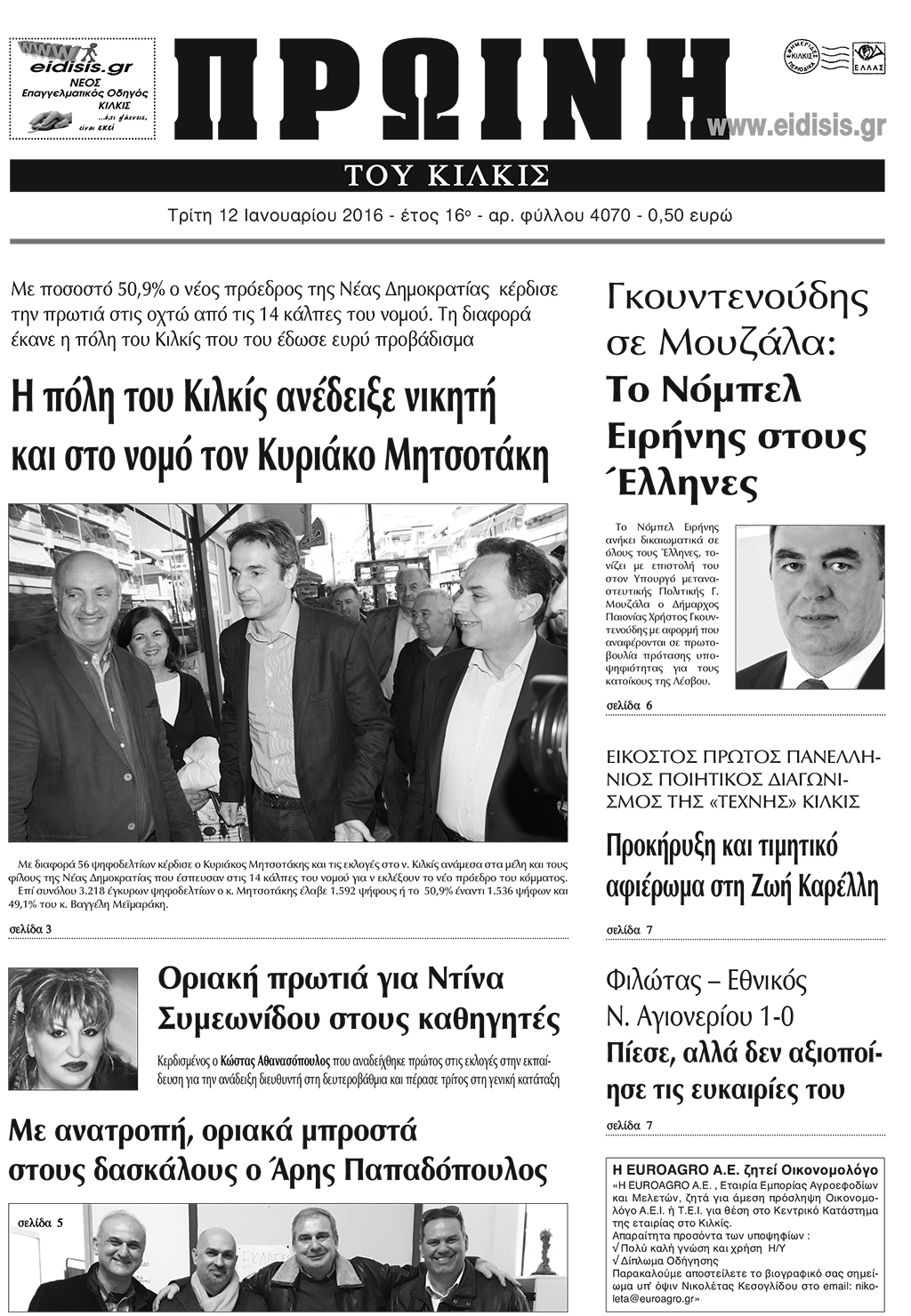 Πέντε χρόνια πριν. Διαβάστε τι έγραφε η καθημερινή εφημερίδα ΠΡΩΙΝΗ του Κιλκίς (12-1-2016)