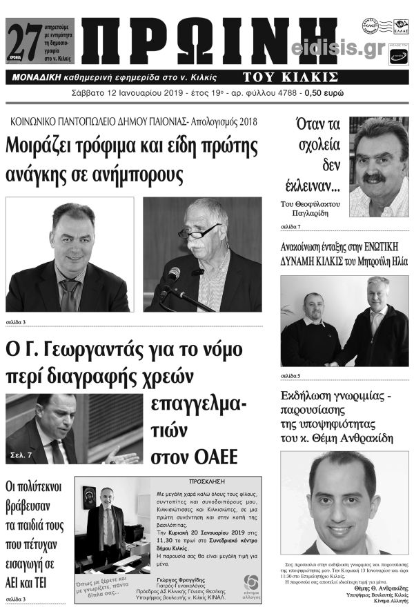 Πέντε χρόνια πριν. Διαβάστε τι έγραφε η καθημερινή εφημερίδα ΠΡΩΙΝΗ του Κιλκίς (12-1-2019)