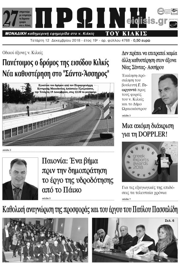Πέντε χρόνια πριν. Διαβάστε τι έγραφε η καθημερινή εφημερίδα ΠΡΩΙΝΗ του Κιλκίς (12-12-2018)