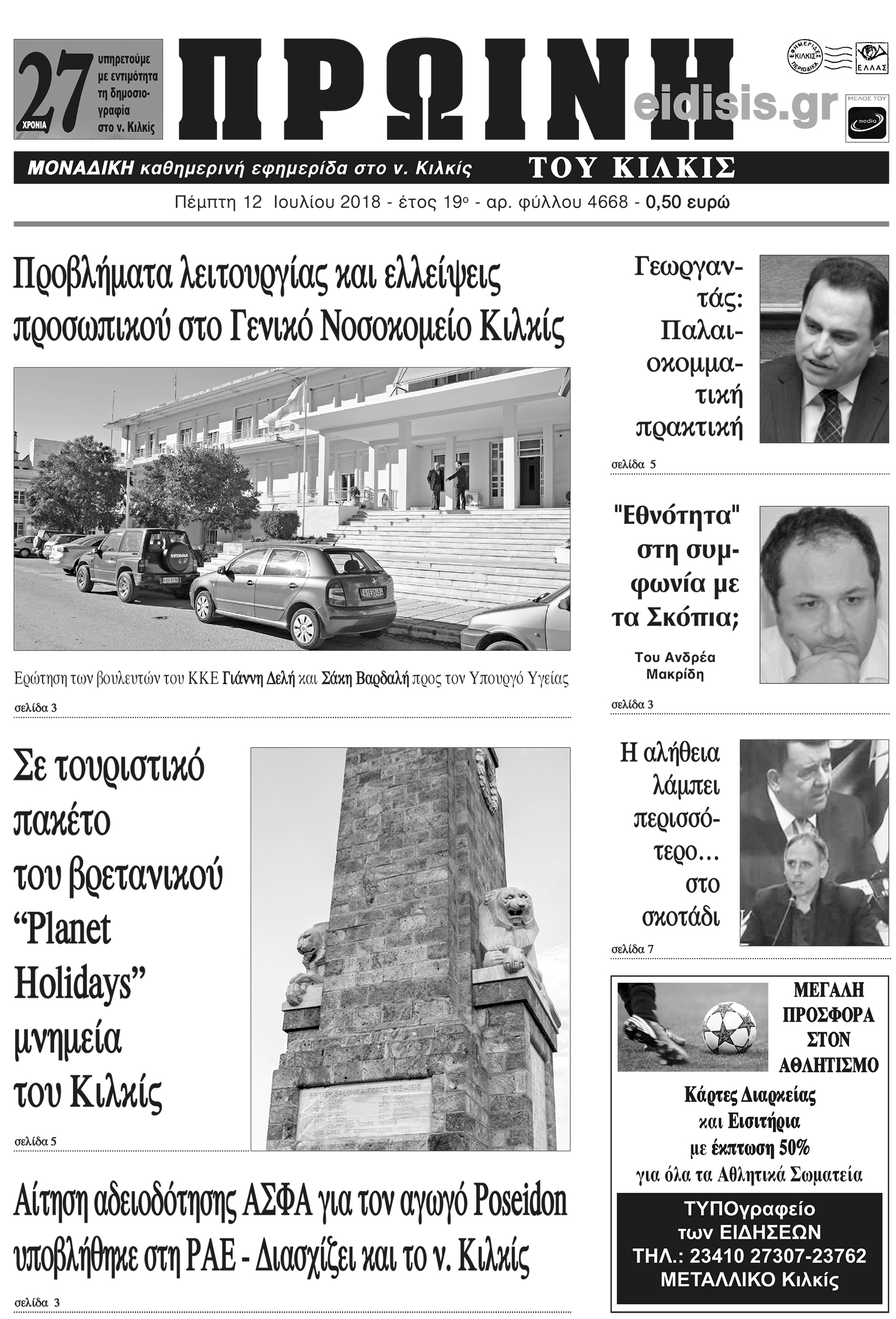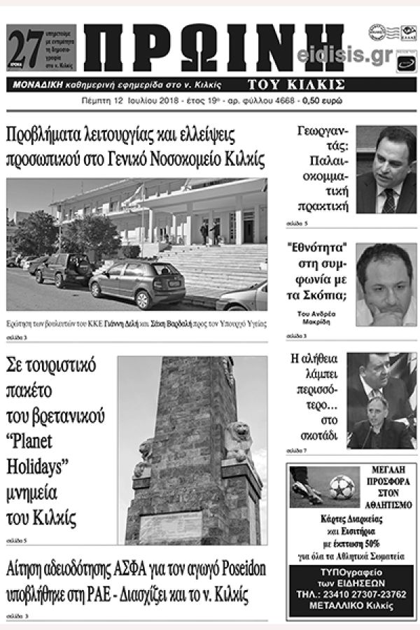 Πέντε χρόνια πριν. Διαβάστε τι έγραφε η καθημερινή εφημερίδα ΠΡΩΙΝΗ του Κιλκίς (12-7-2018)