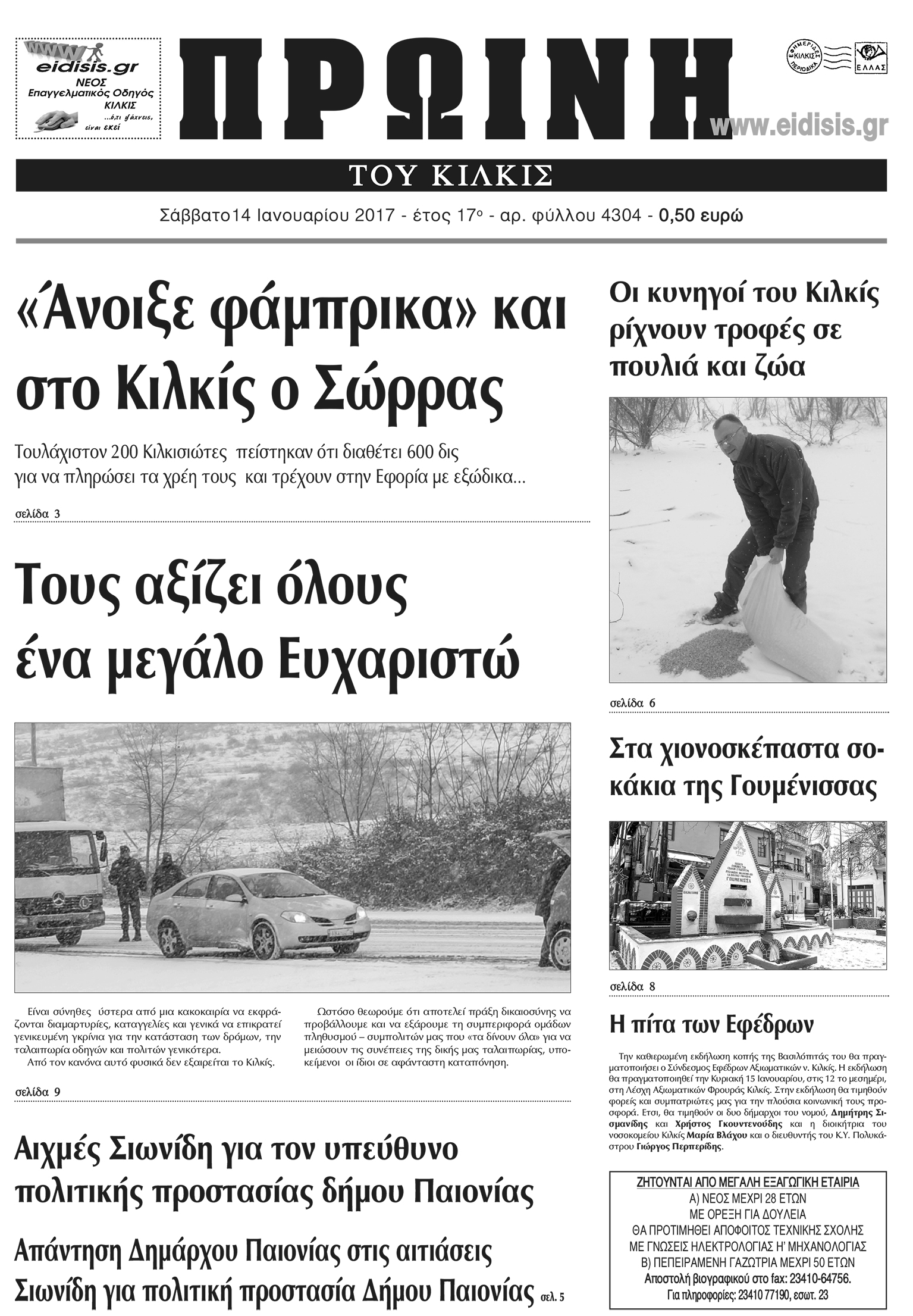 Πέντε χρόνια πριν. Διαβάστε τι έγραφε η καθημερινή εφημερίδα ΠΡΩΙΝΗ του Κιλκίς (14-1-2017)