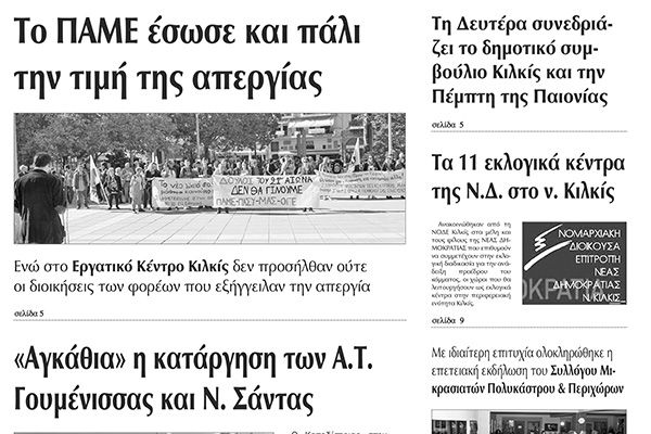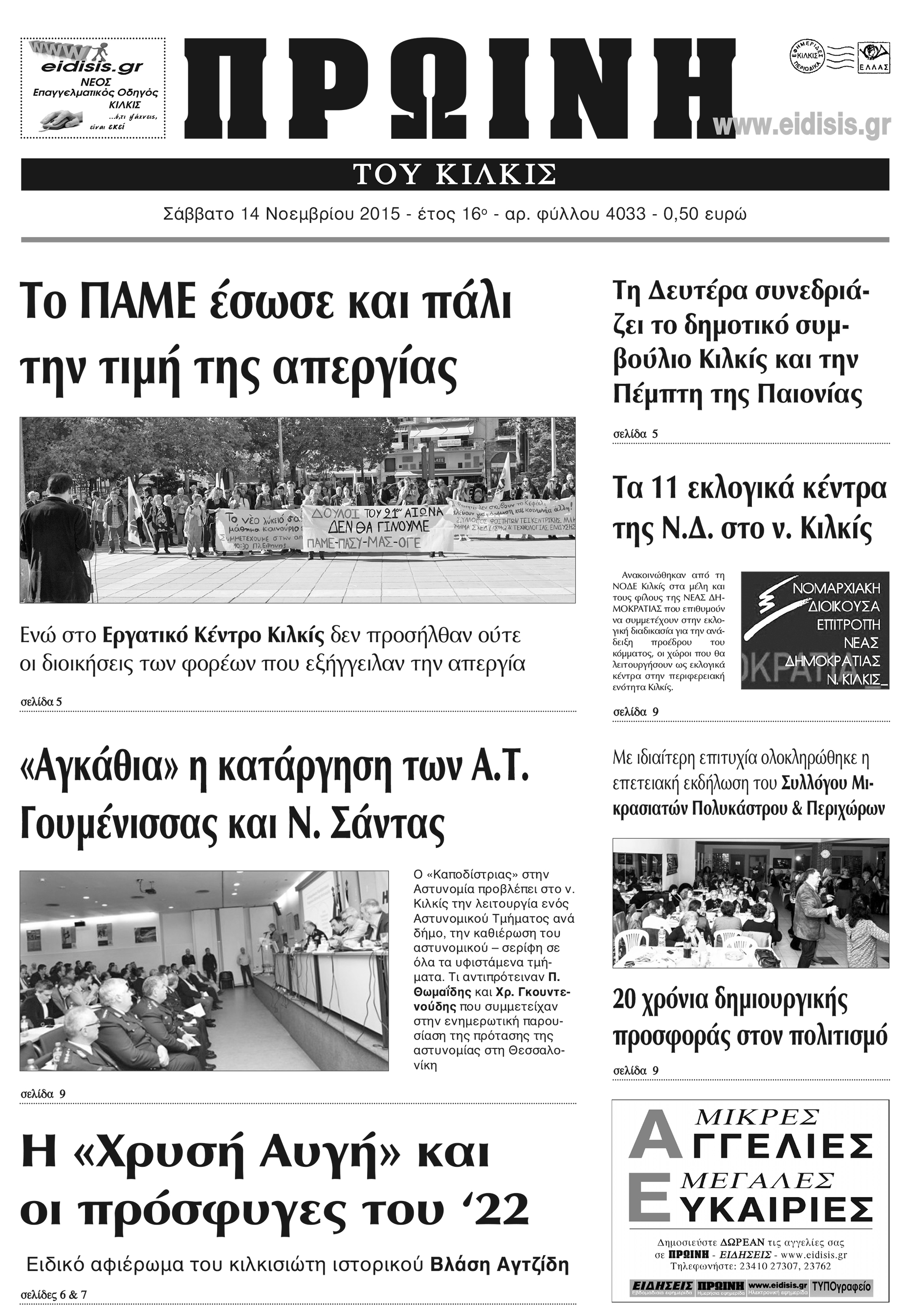 Πέντε χρόνια πριν. Διαβάστε τι έγραφε η καθημερινή εφημερίδα ΠΡΩΙΝΗ του Κιλκίς (14-11-2015)