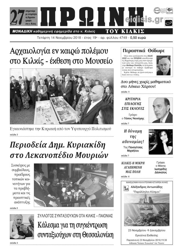 Πέντε χρόνια πριν. Διαβάστε τι έγραφε η καθημερινή εφημερίδα ΠΡΩΙΝΗ του Κιλκίς (14-11-2018)