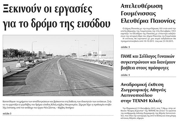 Πέντε χρόνια πριν. Διαβάστε τι έγραφε η καθημερινή εφημερίδα ΠΡΩΙΝΗ του Κιλκίς (15-10-2015)