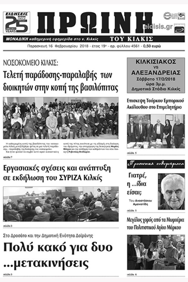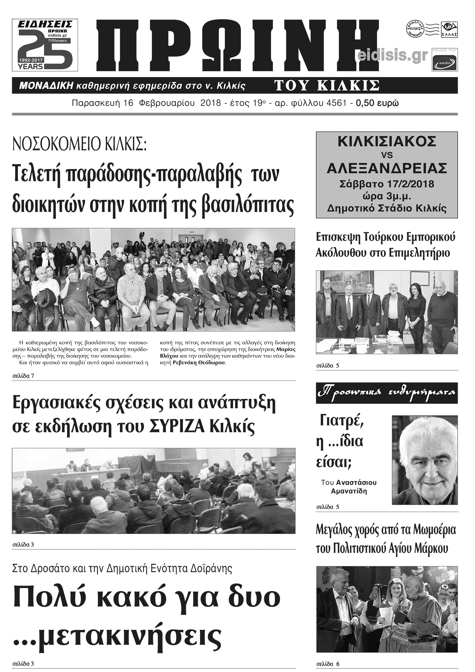 Πέντε χρόνια πριν. Διαβάστε τι έγραφε η καθημερινή εφημερίδα ΠΡΩΙΝΗ του Κιλκίς (16-2-2018)