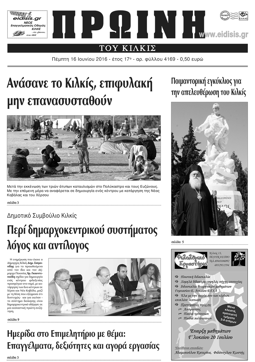 Πέντε χρόνια πριν. Διαβάστε τι έγραφε η καθημερινή εφημερίδα ΠΡΩΙΝΗ του Κιλκίς (16-6-2016)