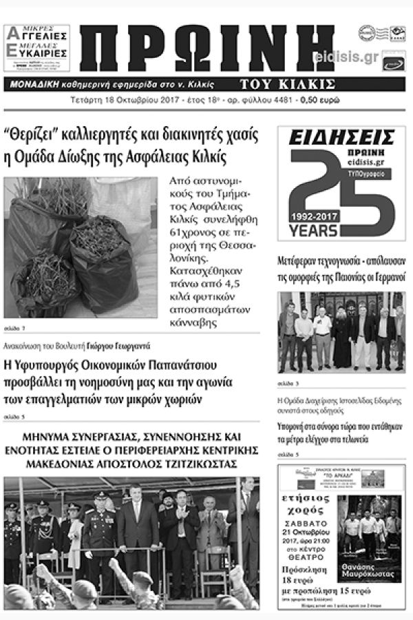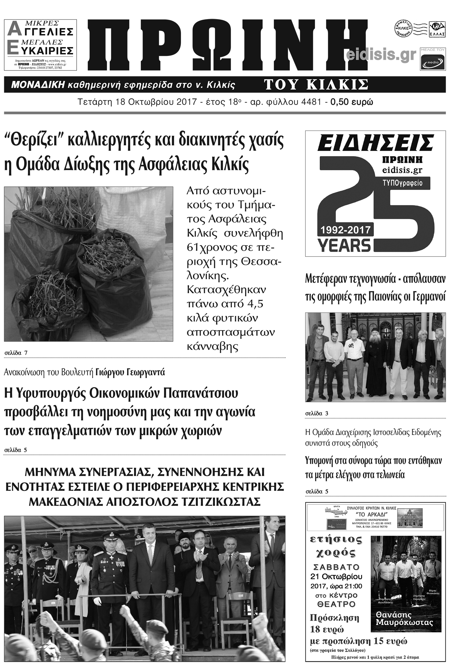 Πέντε χρόνια πριν. Διαβάστε τι έγραφε η καθημερινή εφημερίδα ΠΡΩΙΝΗ του Κιλκίς (18-10-2017)