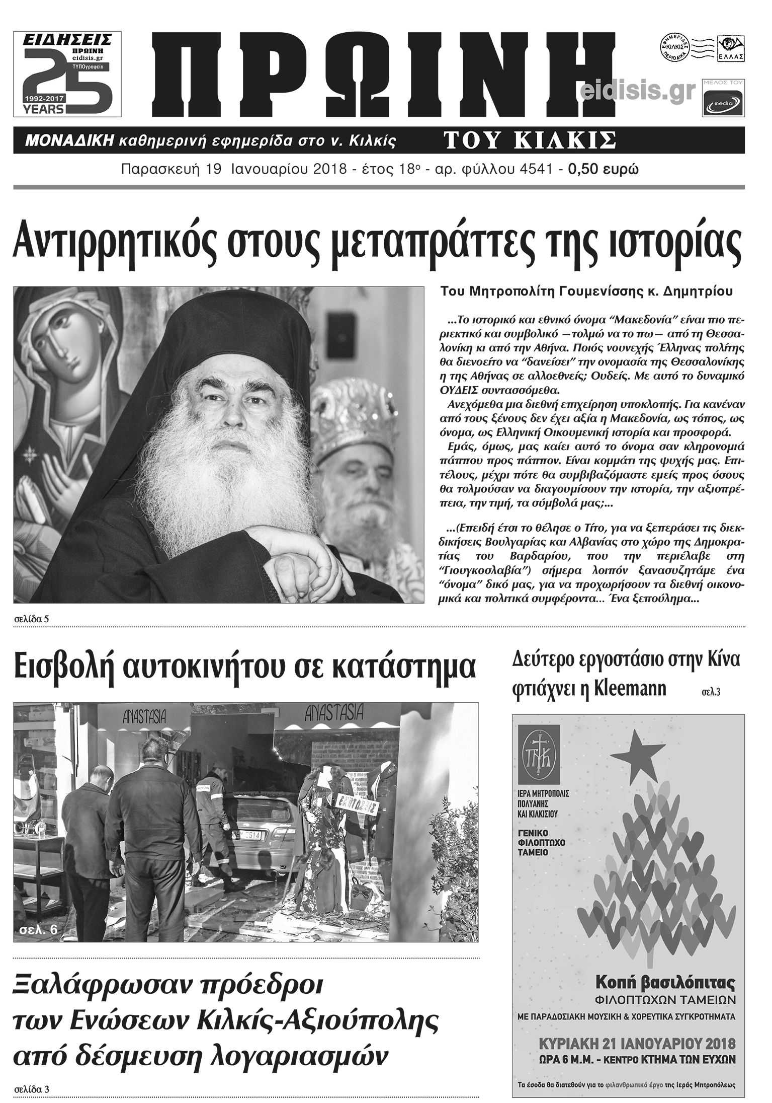 Πέντε χρόνια πριν. Διαβάστε τι έγραφε η καθημερινή εφημερίδα ΠΡΩΙΝΗ του Κιλκίς (19-1-2018)
