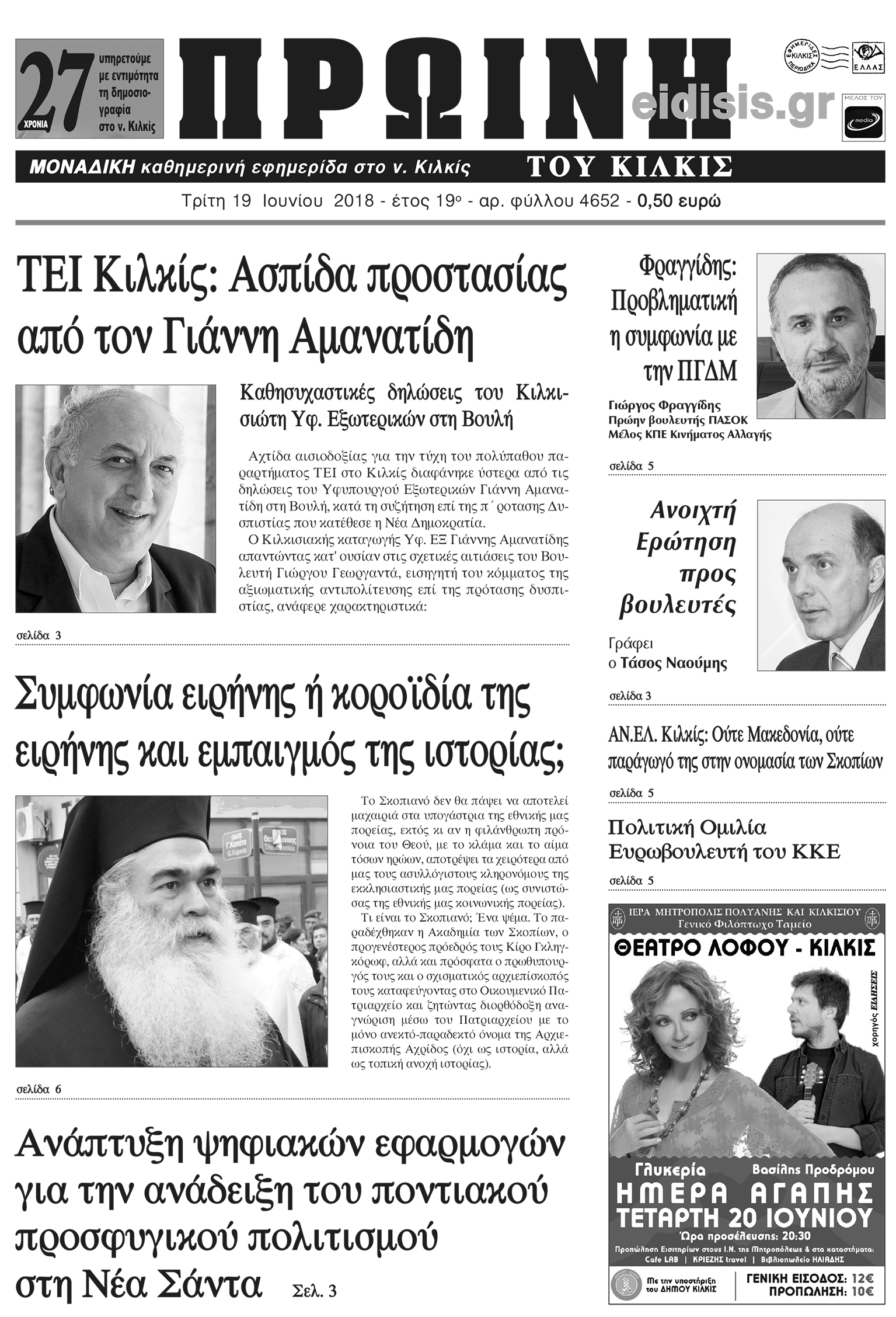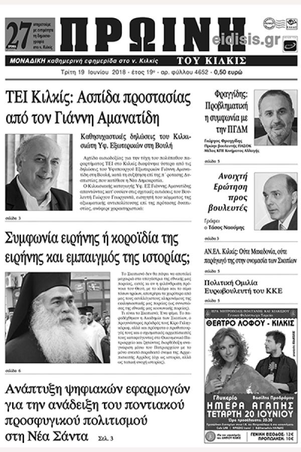 Πέντε χρόνια πριν. Διαβάστε τι έγραφε η καθημερινή εφημερίδα ΠΡΩΙΝΗ του Κιλκίς (19-6-2018)