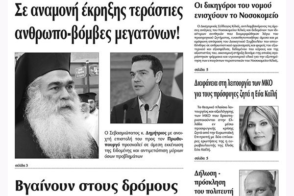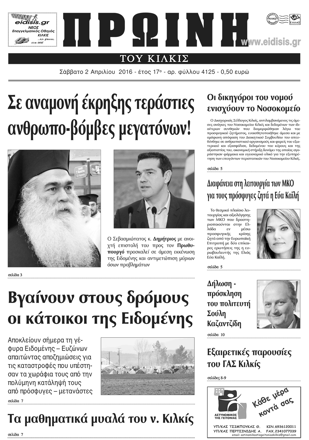 Πέντε χρόνια πριν. Διαβάστε τι έγραφε η καθημερινή εφημερίδα ΠΡΩΙΝΗ του Κιλκίς (2-4-2016)