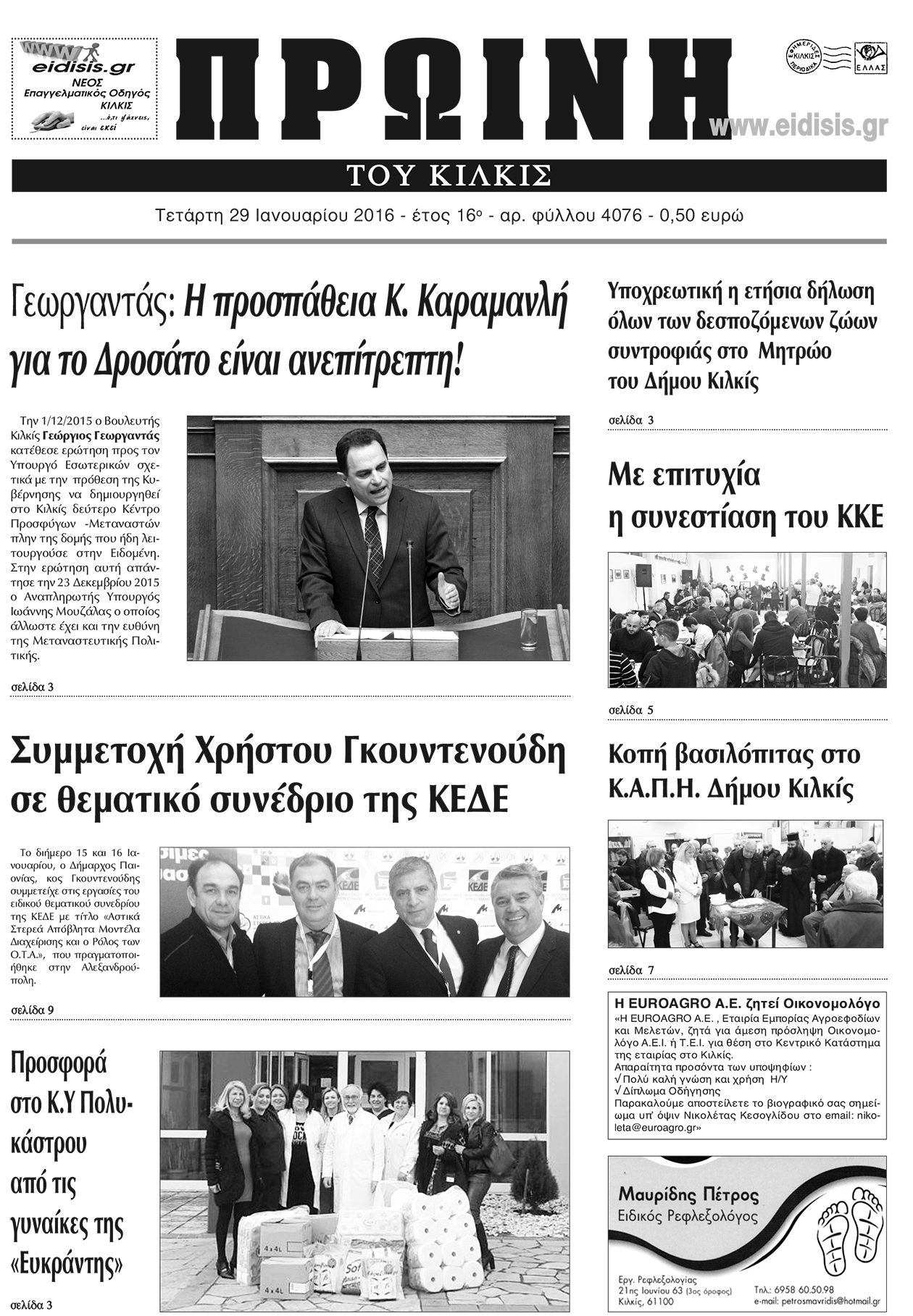 Πέντε χρόνια πριν. Διαβάστε τι έγραφε η καθημερινή εφημερίδα ΠΡΩΙΝΗ του Κιλκίς (20-1-2016)