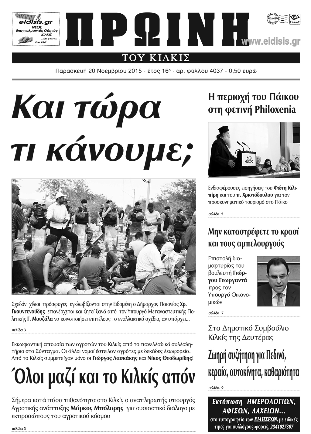 Πέντε χρόνια πριν. Διαβάστε τι έγραφε η καθημερινή εφημερίδα ΠΡΩΙΝΗ του Κιλκίς (20-11-2015)