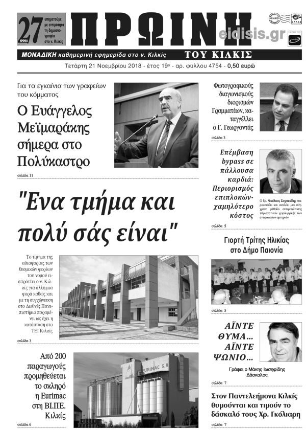 Πέντε χρόνια πριν. Διαβάστε τι έγραφε η καθημερινή εφημερίδα ΠΡΩΙΝΗ του Κιλκίς (21-11-2018)