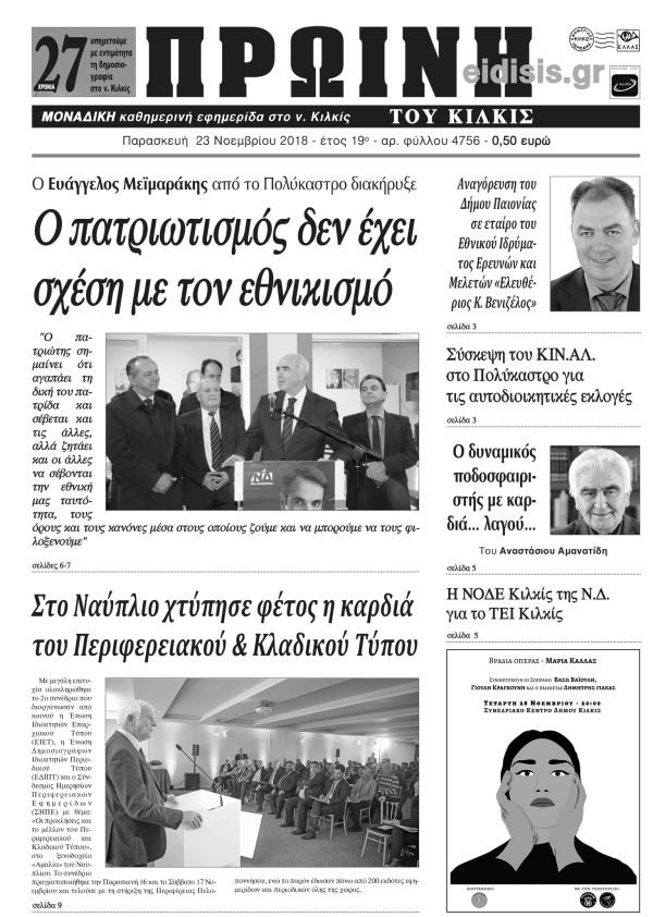 Πέντε χρόνια πριν. Διαβάστε τι έγραφε η καθημερινή εφημερίδα ΠΡΩΙΝΗ του Κιλκίς (23-11-2018)