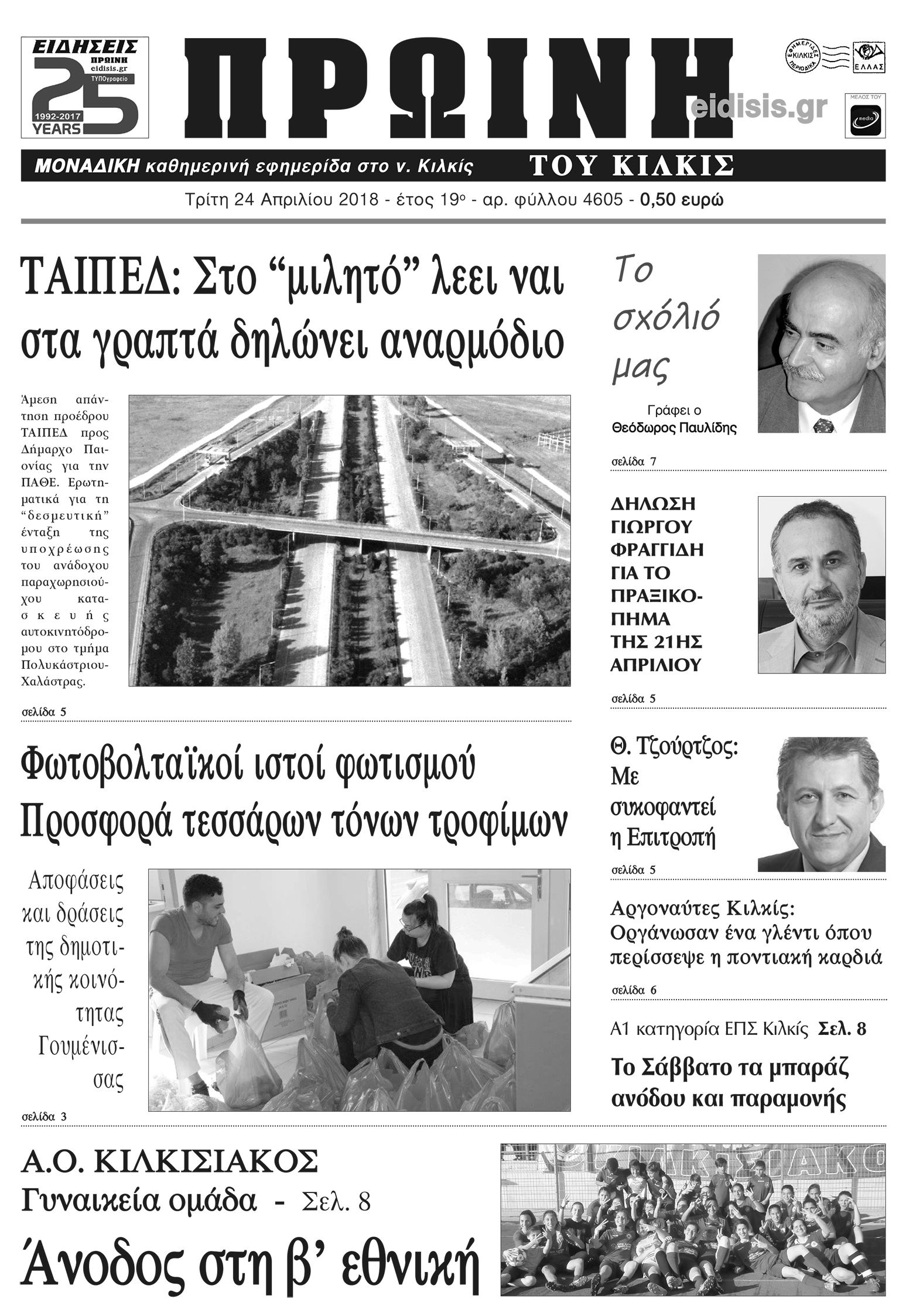 Πέντε χρόνια πριν. Διαβάστε τι έγραφε η καθημερινή εφημερίδα ΠΡΩΙΝΗ του Κιλκίς (24-4-2018)