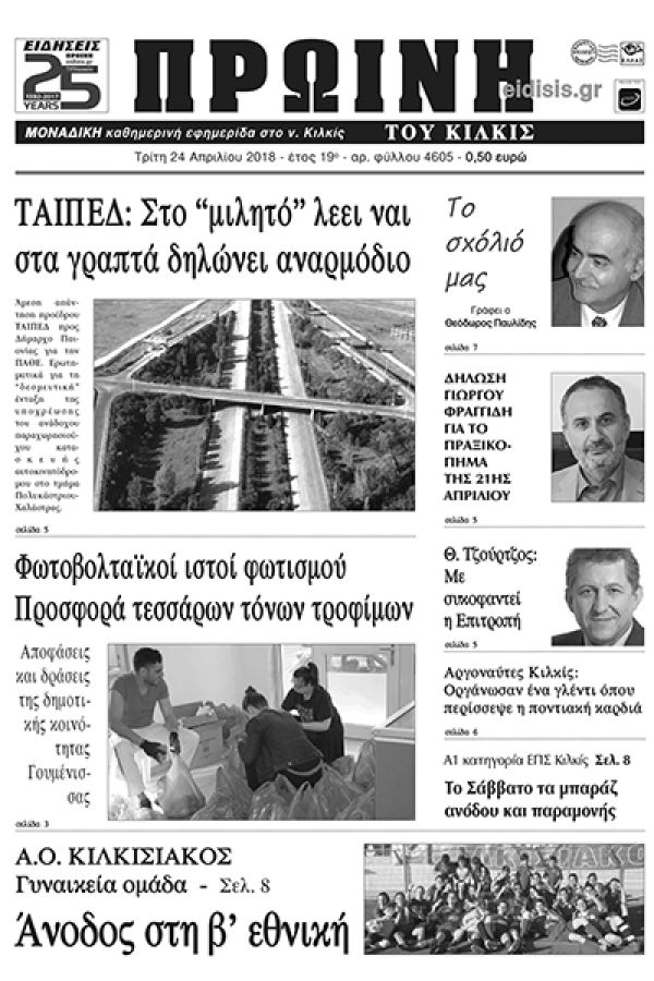 Πέντε χρόνια πριν. Διαβάστε τι έγραφε η καθημερινή εφημερίδα ΠΡΩΙΝΗ του Κιλκίς (24-4-2018).