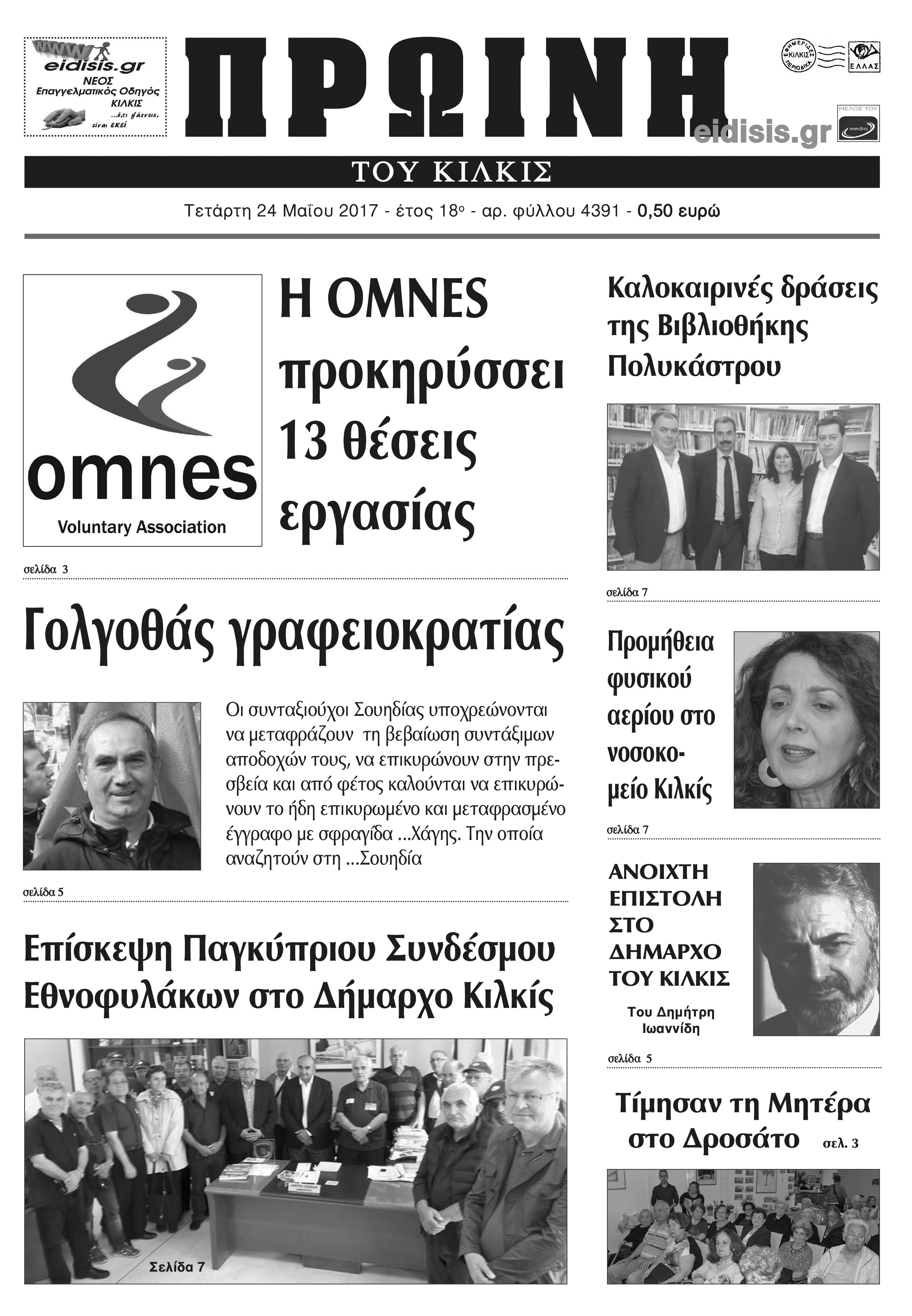 Πέντε χρόνια πριν. Διαβάστε τι έγραφε η καθημερινή εφημερίδα ΠΡΩΙΝΗ του Κιλκίς (24-5-2017)