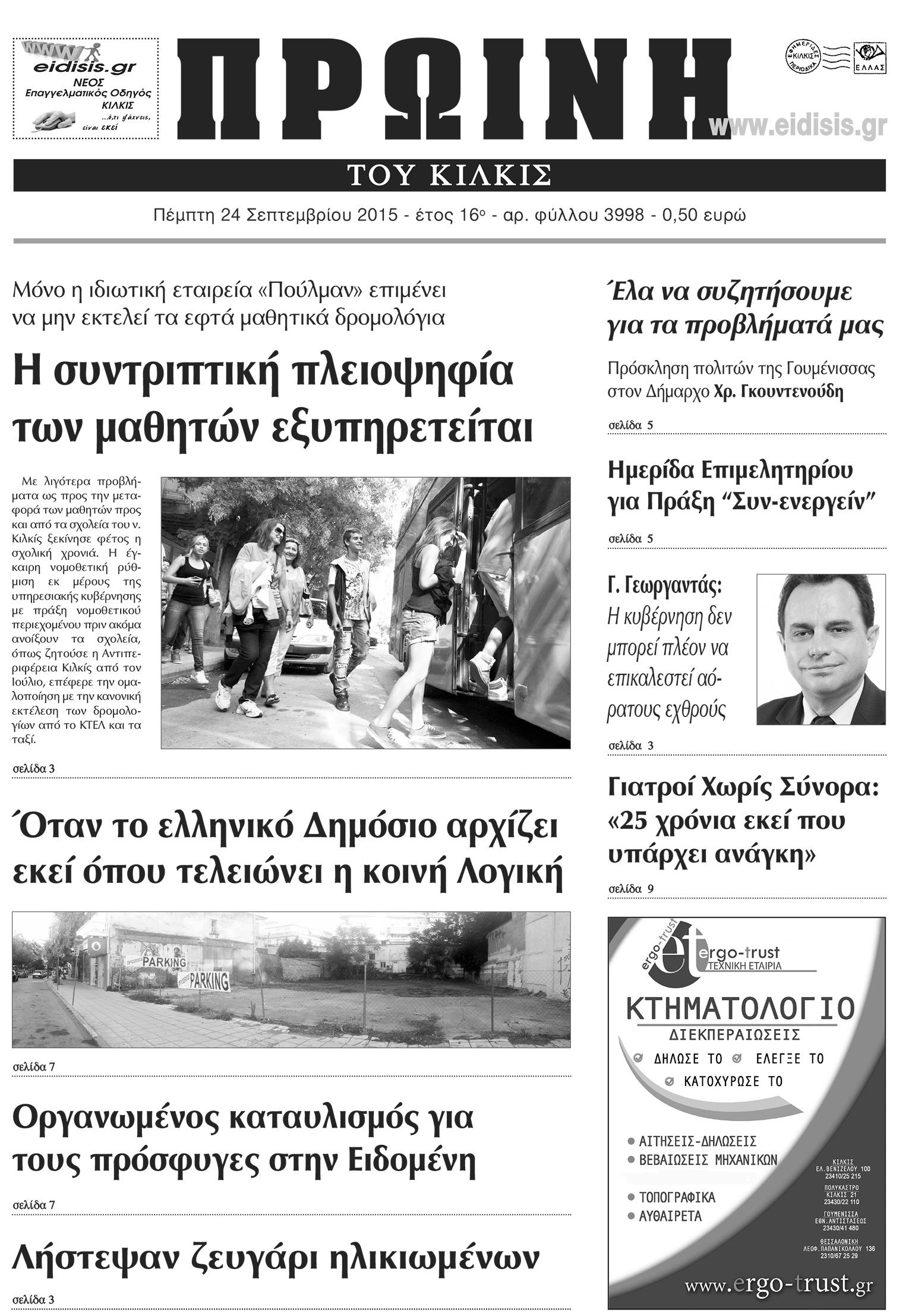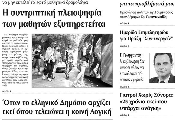 Πέντε χρόνια πριν. Διαβάστε τι έγραφε η καθημερινή εφημερίδα ΠΡΩΙΝΗ του Κιλκίς (24-9-2015)