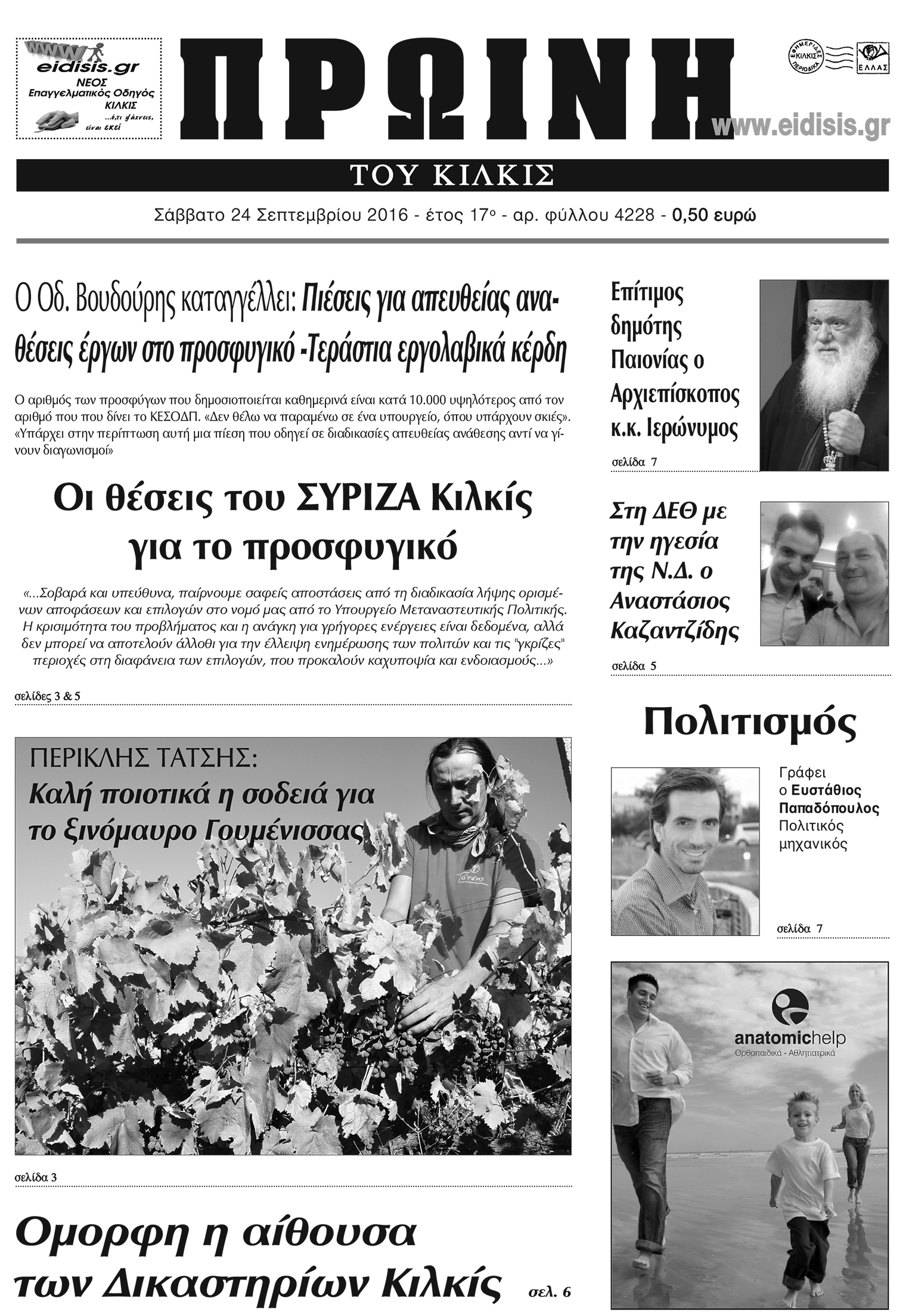 Πέντε χρόνια πριν. Διαβάστε τι έγραφε η καθημερινή εφημερίδα ΠΡΩΙΝΗ του Κιλκίς (24-9-2016)