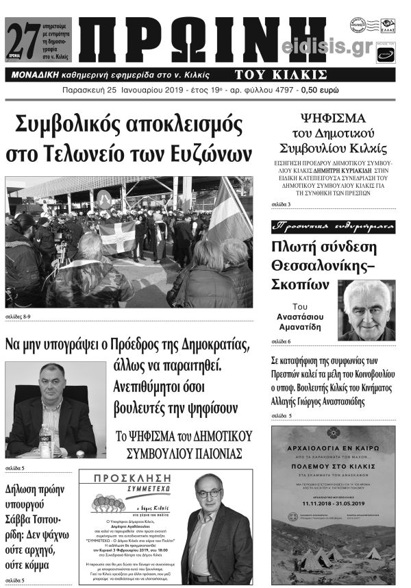 Πέντε χρόνια πριν. Διαβάστε τι έγραφε η καθημερινή εφημερίδα ΠΡΩΙΝΗ του Κιλκίς (25-1-2019)