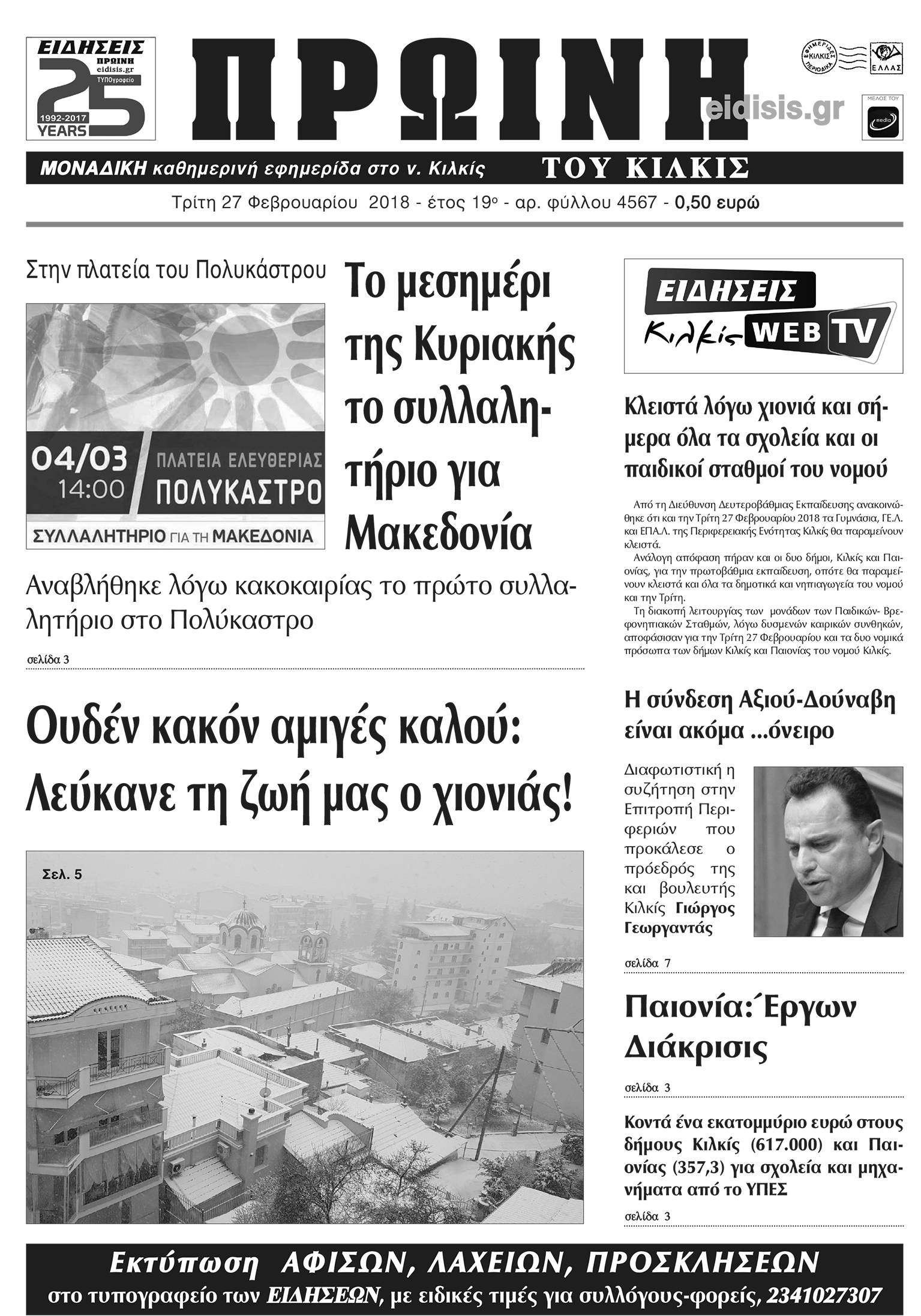 Πέντε χρόνια πριν. Διαβάστε τι έγραφε η καθημερινή εφημερίδα ΠΡΩΙΝΗ του Κιλκίς (27-2-2018)