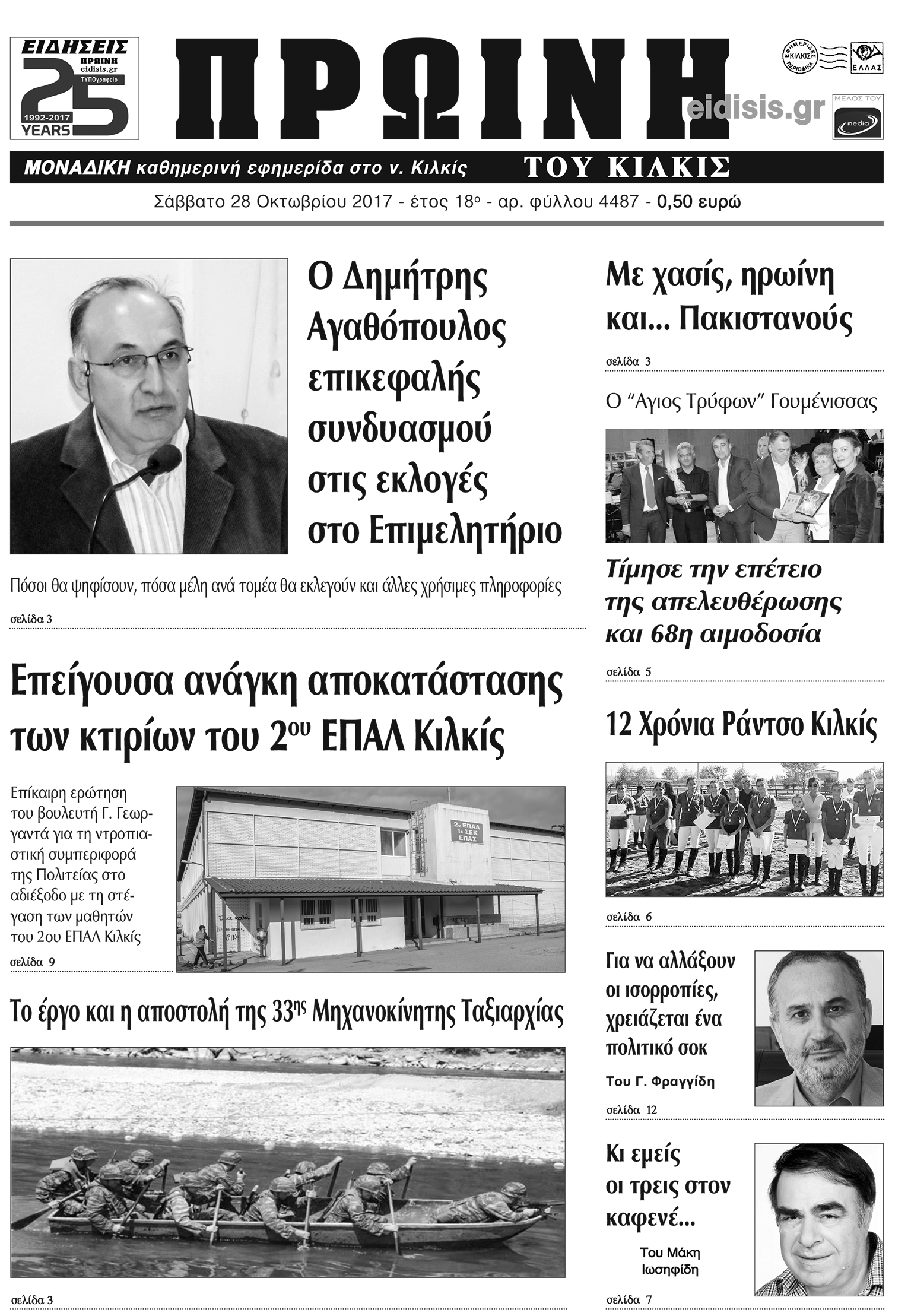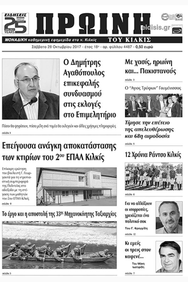 Πέντε χρόνια πριν. Διαβάστε τι έγραφε η καθημερινή εφημερίδα ΠΡΩΙΝΗ του Κιλκίς (28-10-2017)