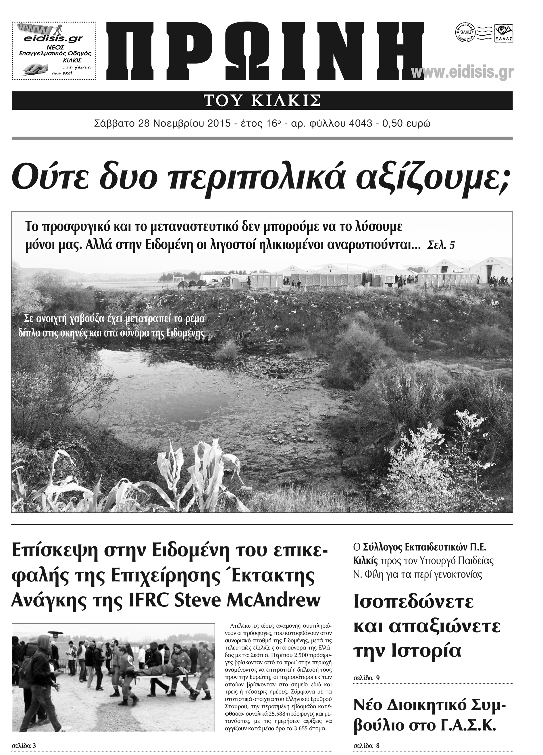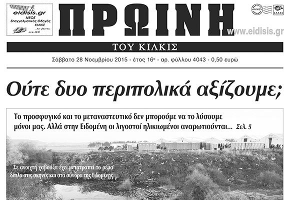Πέντε χρόνια πριν. Διαβάστε τι έγραφε η καθημερινή εφημερίδα ΠΡΩΙΝΗ του Κιλκίς (28-11-2015)