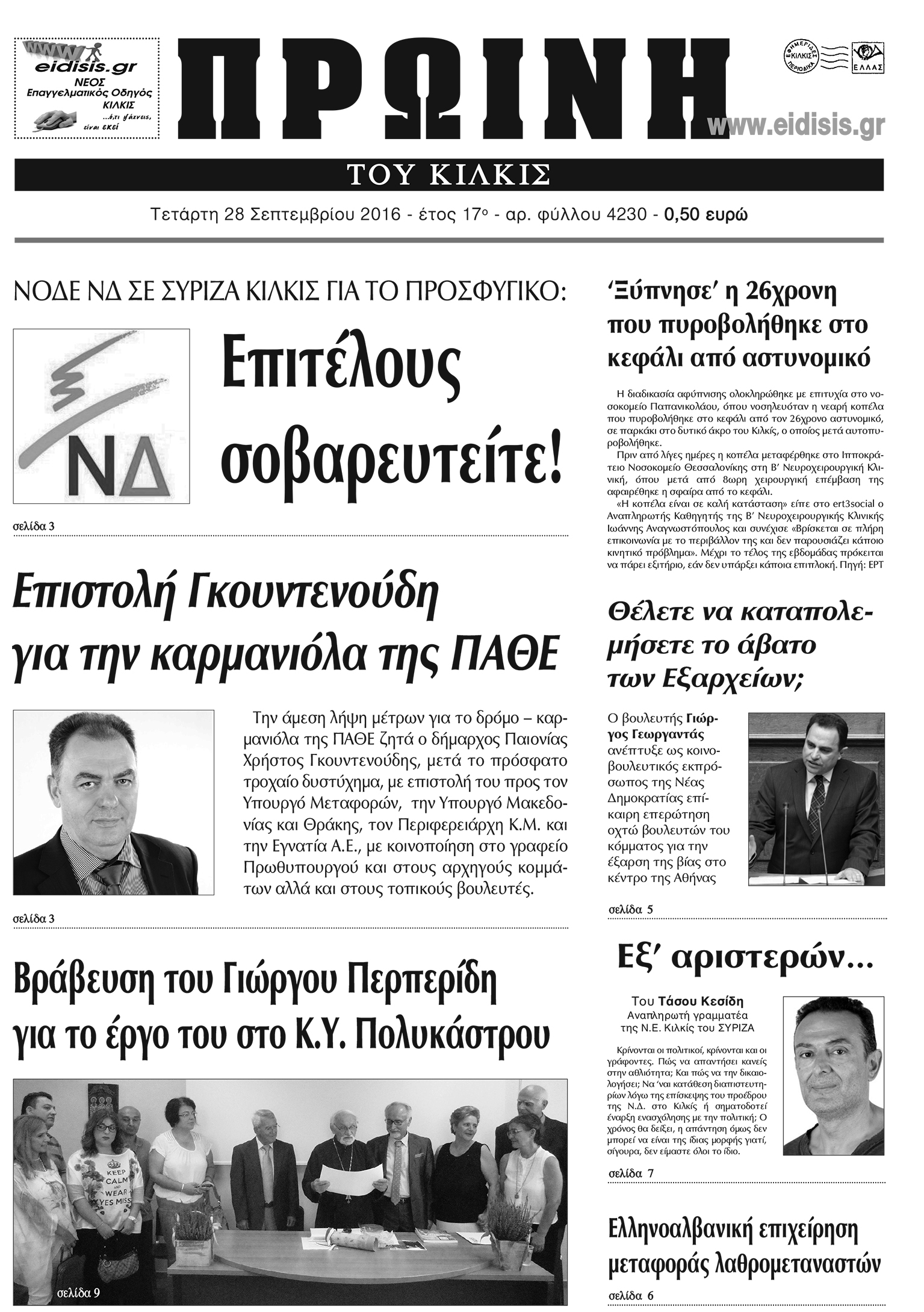 Πέντε χρόνια πριν. Διαβάστε τι έγραφε η καθημερινή εφημερίδα ΠΡΩΙΝΗ του Κιλκίς (28-9-2016)
