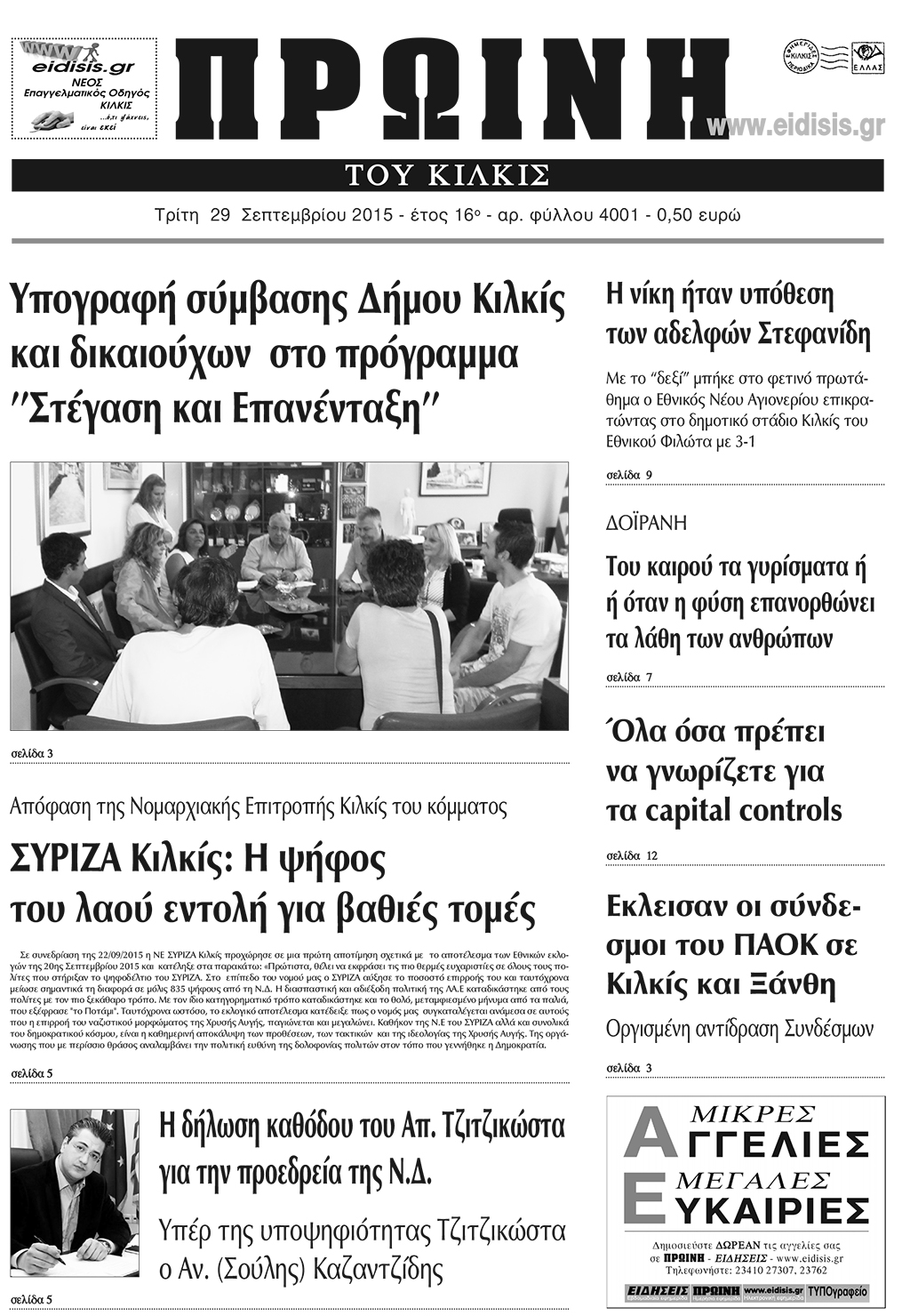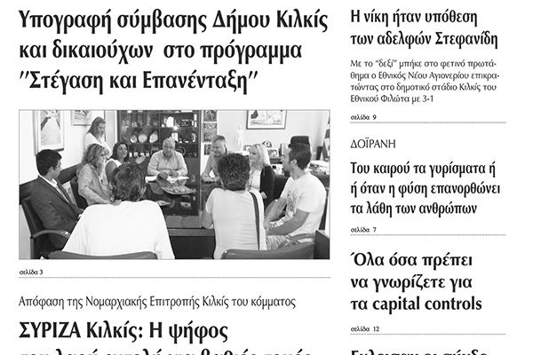 Πέντε χρόνια πριν. Διαβάστε τι έγραφε η καθημερινή εφημερίδα ΠΡΩΙΝΗ του Κιλκίς (29-9-2015)