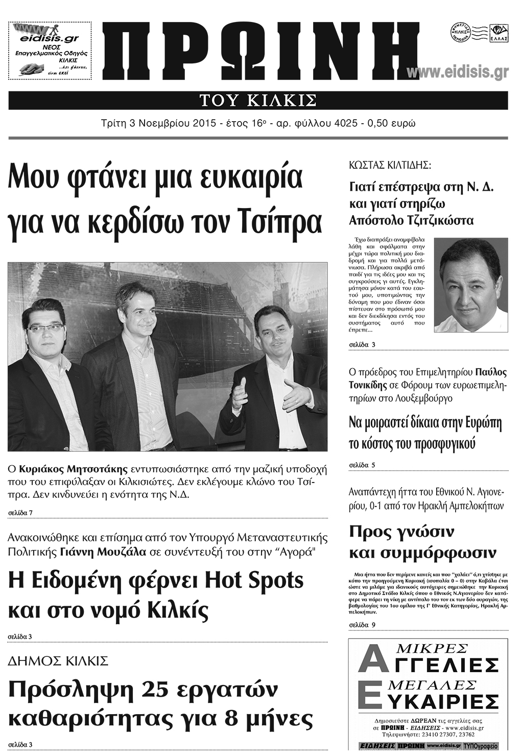 Πέντε χρόνια πριν. Διαβάστε τι έγραφε η καθημερινή εφημερίδα ΠΡΩΙΝΗ του Κιλκίς (3-11-2015)
