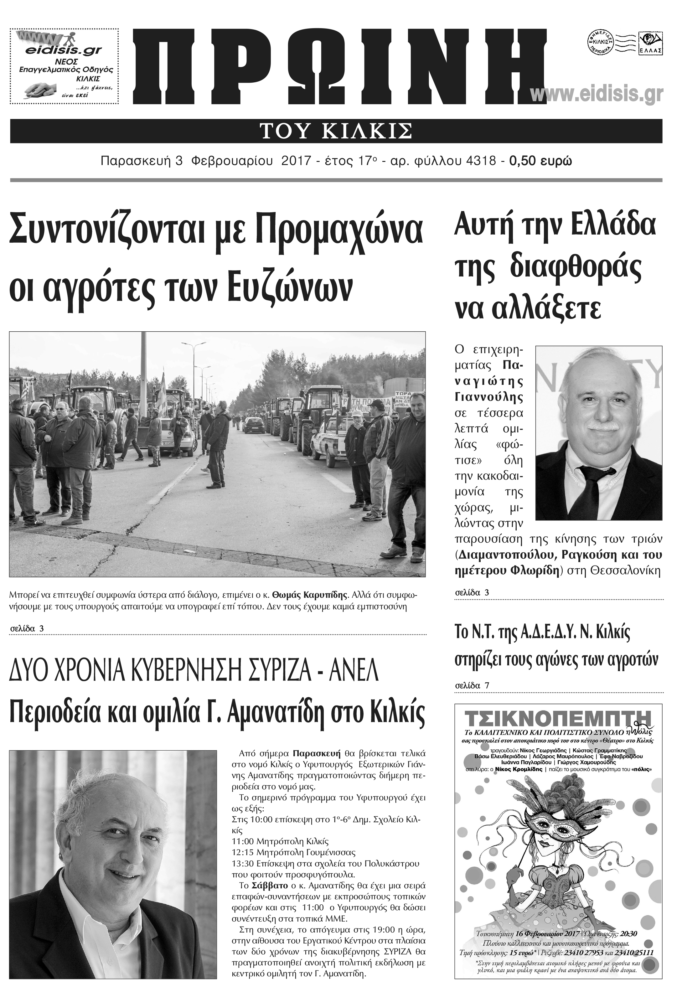 Πέντε χρόνια πριν. Διαβάστε τι έγραφε η καθημερινή εφημερίδα ΠΡΩΙΝΗ του Κιλκίς (3-2-2017)