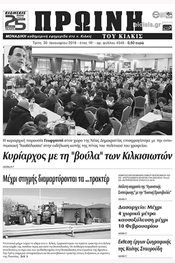 Πέντε χρόνια πριν. Διαβάστε τι έγραφε η καθημερινή εφημερίδα ΠΡΩΙΝΗ του Κιλκίς (30-1-2018)